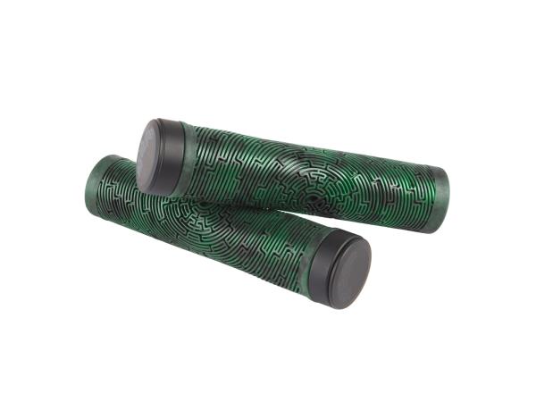 Plastikowa tulejka znajduje się tylko bezpośrednio pod bar endem a nie na całej długości gripa, jak w przypadku tradycyjnych gripów skręcanych. Gripy Maze łączą wszystkie zalety gripów skręcanych z komfortem jaki daje gruba warstwa bardzo miękkiej mieszanki gumowej oraz wzór delikatnych, cienkich linii wygodnie uginających się pod dłonią. Wzór układa się na powierzchni gripów w kształt labiryntu. Dodatkową zaletą tych gripów jest ich wyjątkowa lekkość.