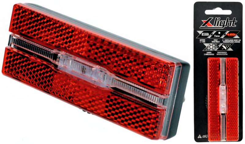 X-Light JY-6500 to klasyczna lampa tylna montowana na bagażniku, wyposażona w dwie super mocne diody LED oraz wbudowany odblask. Zapewnia podstawowe oświetlenie i poprawia widoczność rowerzysty po zmroku. Zasilana na baterie AAA, jest łatwa w obsłudze i montażu.