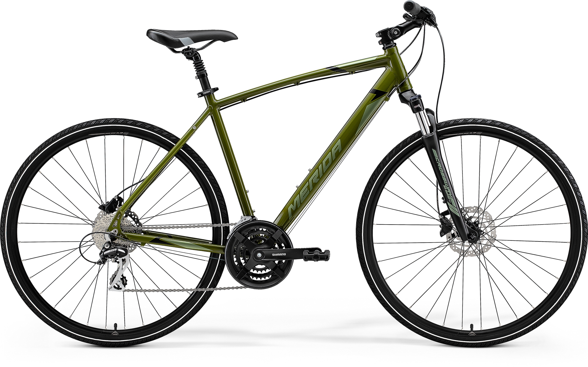 Crossway to nasz synonim wszechstronności – rower crossowy na drogi i bezdroża, codzienne trasy i dłuższe wyprawy. Jeśli szukasz uniwersalnego roweru łączącego cechy roweru górskiego i miejskiego, Crossway będzie świetnym wyborem. Crossway Lady 40 ma mocną ramę Speed z podwójnie cieniowanego i technoformowanego aluminium, o lekkich i sztywnych rurach, której geometria zapewni Ci komfort i efektywną jazdę. Dzięki obniżonemu przekrokowi łatwo wsiądziesz na rower i zejdziesz z niego. Rama jest przygotowana do założenia błotników i bagażnika, by Crossway mógł Ci służyć jako rower wyprawowy albo do dojazdów do pracy. Odpowiedni zakres przełożeń zapewni Ci sprawdzony napęd Shimano, a bezpieczeństwo w różnych warunkach pogodowych zwiększą hydrauliczne hamulce tarczowe Shimano z zaciskami MT-200. Komfort na trasie poprawi amortyzator sprężynowy SR Suntour NEX HLO Coil 63 mm, zwiększą go także opony Merida K1171. Dodatkowy komfort i możliwość regulacji pozycji do jazdy uzyskasz dzięki amortyzowanej sztycy i regulowanemu mostkowi, w które wyposażyliśmy ten model. Możesz polegać również na pozostałych komponentach Merida i mocnych kołach Merida CC. Niezależnie do tego, czy jedziesz na wycieczkę do parku, dojeżdżasz rowerem do pracy czy wybierasz się na dłuższą wyprawę, Merida Crossway Lady 40 będzie Ci dzielnie towarzyszyć. Nie zwlekaj, odkryj nowe trasy i zabierz ją na swoje ulubione odcinki!