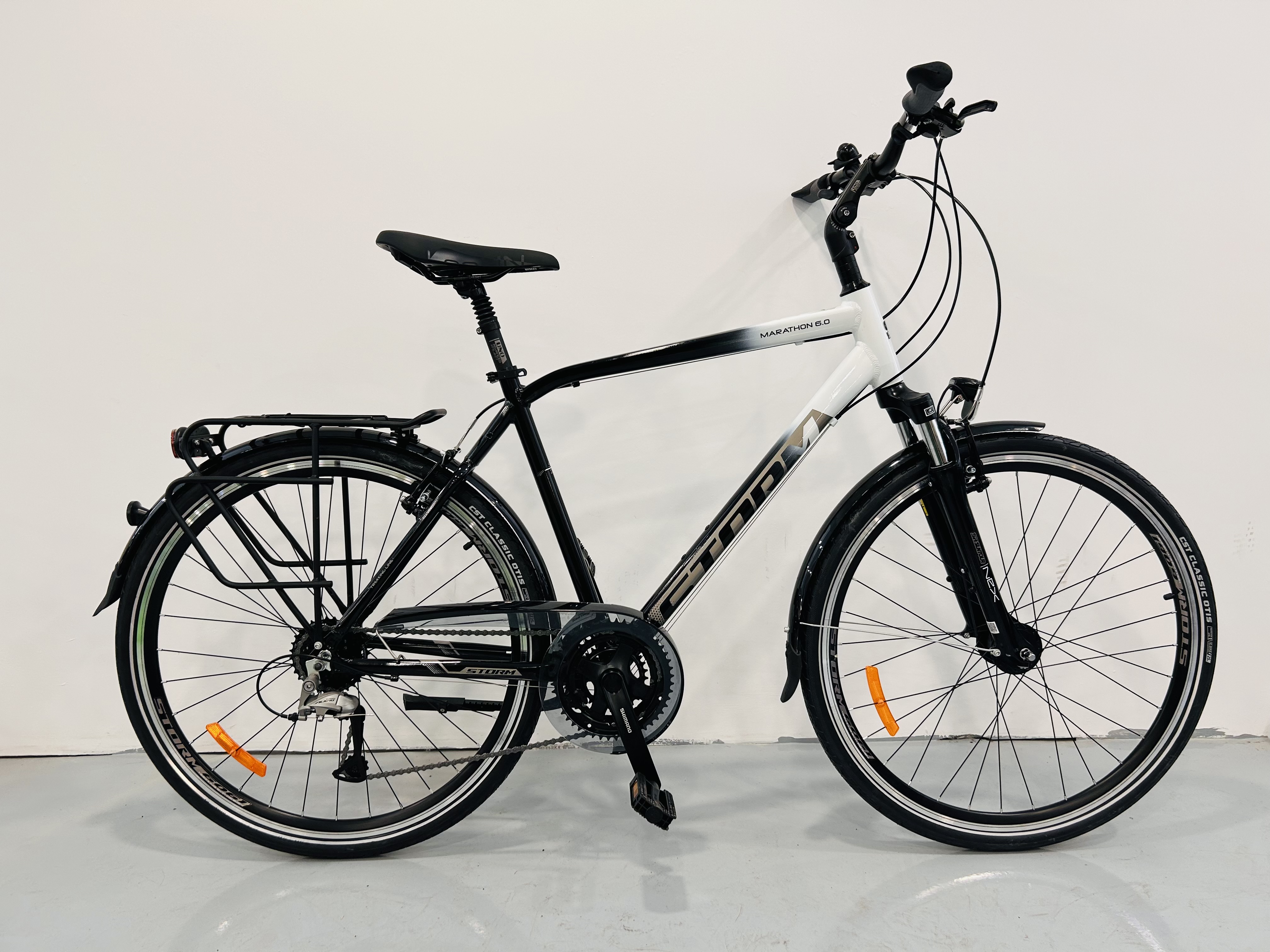 Storm Marathon 6.0 to idealny rower trekkingowy dla każdego, kto szuka komfortowego i dobrze wyposażonego jednośladu do miasta i poza nim. Dzięki dynamo w piaście, amortyzowanemu widelcowi i napędowi Shimano Alivio jazda tym rowerem to czysta przyjemność.