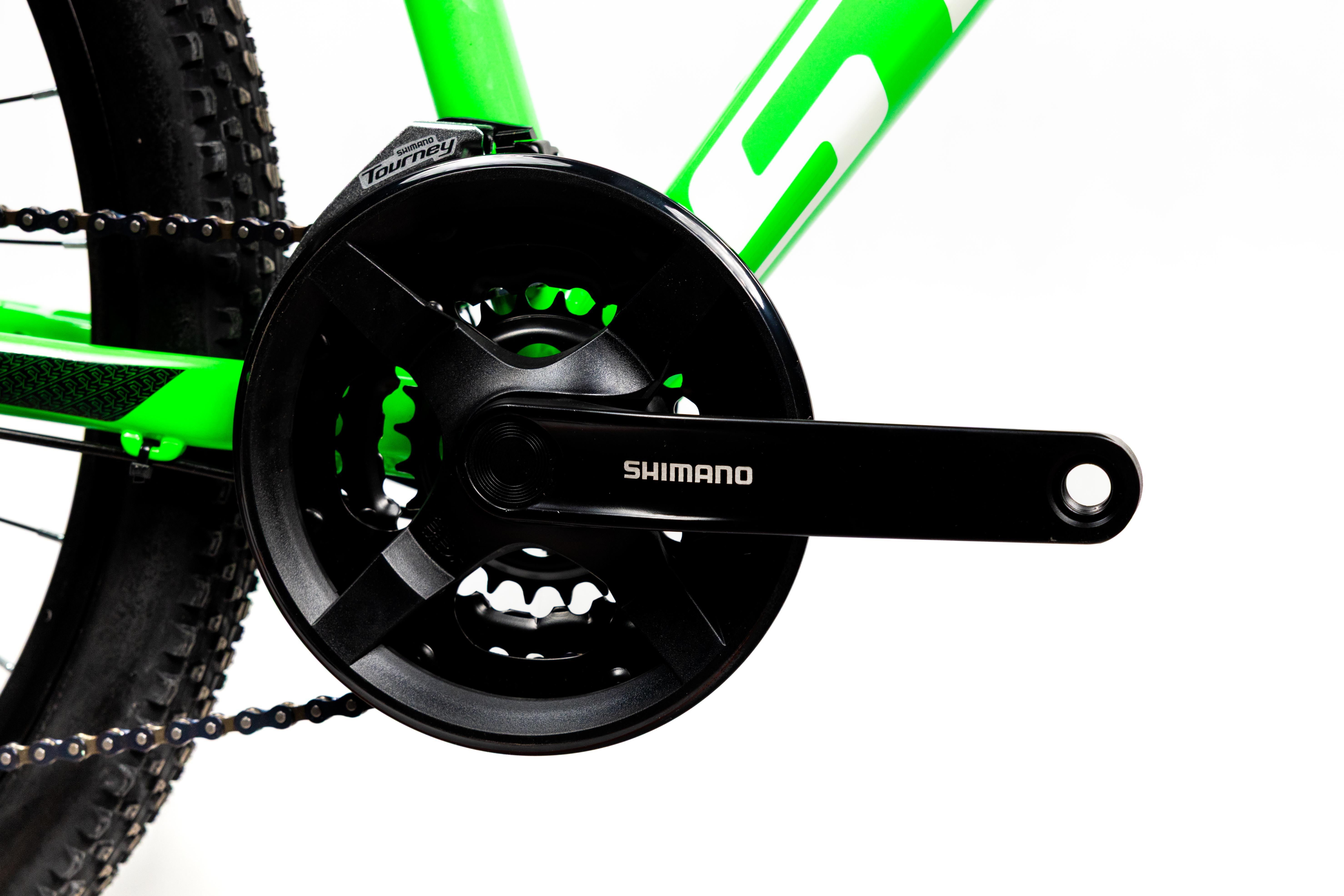 Rower wyposażony jest w kompletny napęd Shimano Tourney 3x7, który zapewnia płynną zmianę przełożeń i szeroki zakres biegów. Dzięki temu można łatwo dostosować siłę pedałowania do warunków terenowych, zarówno podczas jazdy pod górę, jak i na prostych odcinkach.